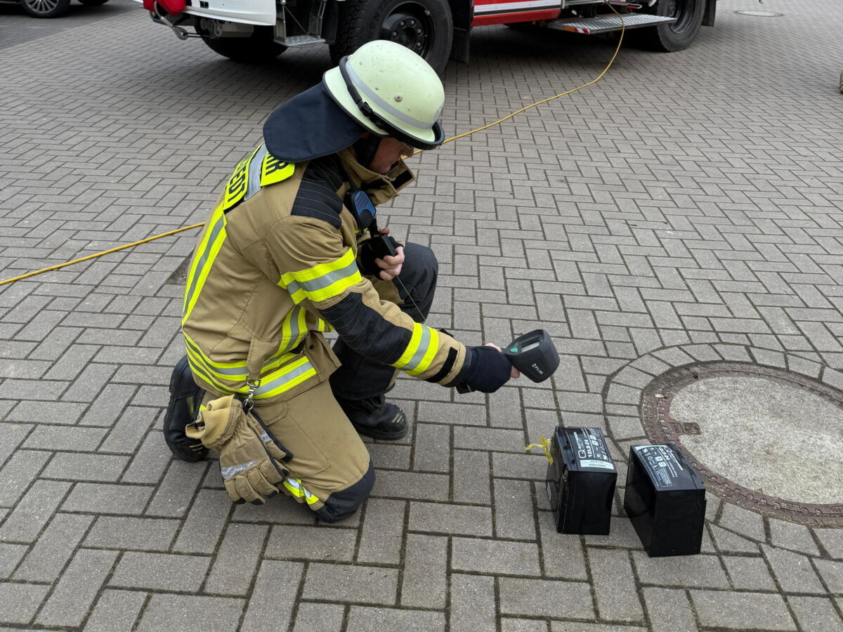 Durch die Alarmierung selbst ließ sich die Lage erst einmal nicht einschätzen. Vor Ort erfuhren wir dann, dass die Leiterin der Kita einen Brandgeruch im Büro wahrgenommen hatte. Lokalisieren ließ sich dieser nicht. Bei unserem Eintreffen befanden sich also keine Kinder mehr im betroffenen Gebäudeteil. Die Polizei war bereits vor Ort. Kurz nach uns trafen auch der Rettungsdienst und die Feuerwehr Lutten ein. Unser Angriffstrupp ging unter Atemschutz in das Gebäude vor. Mittels Wärmebildkamera suchte er nach der Ursache des Brandgeruchs. Die Akkus wurden abgeklemmt und nach draußen gebracht. Dort prüften wir immer wieder die Temperatur. Während wir auf den zuständigen Techniker der Anlage warteten, wurden die Räumlichkeiten mittels Hochdrucklüfter belüftet. Um den Kindern eine Freude zu machen und die Angst vor dem Ganzen zu nehmen, durfte die Gruppe am Ende natürlich noch das Feuerwehrauto besichtigen. Nachdem der Techniker eingetroffen war, übergaben wir die Einsatzstelle und rückten wieder ein. |
