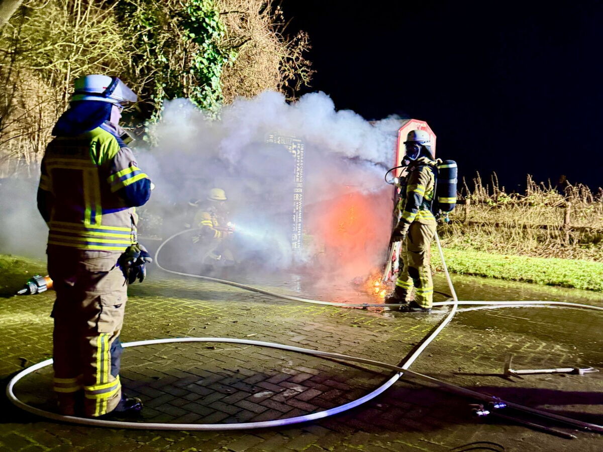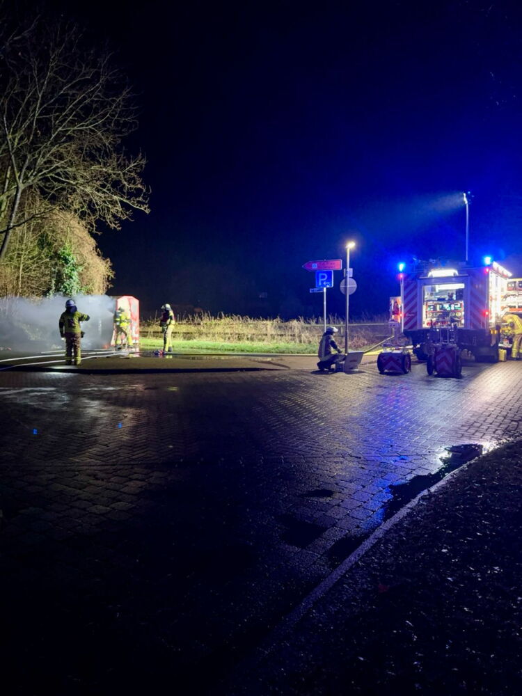 Auf Anfahrt wurde uns gemeldet, dass das Feuer bereits von Anwohnern gelöscht worden war. Wir müssen dennoch prüfen, ob wirklich keine Gefahr mehr besteht.