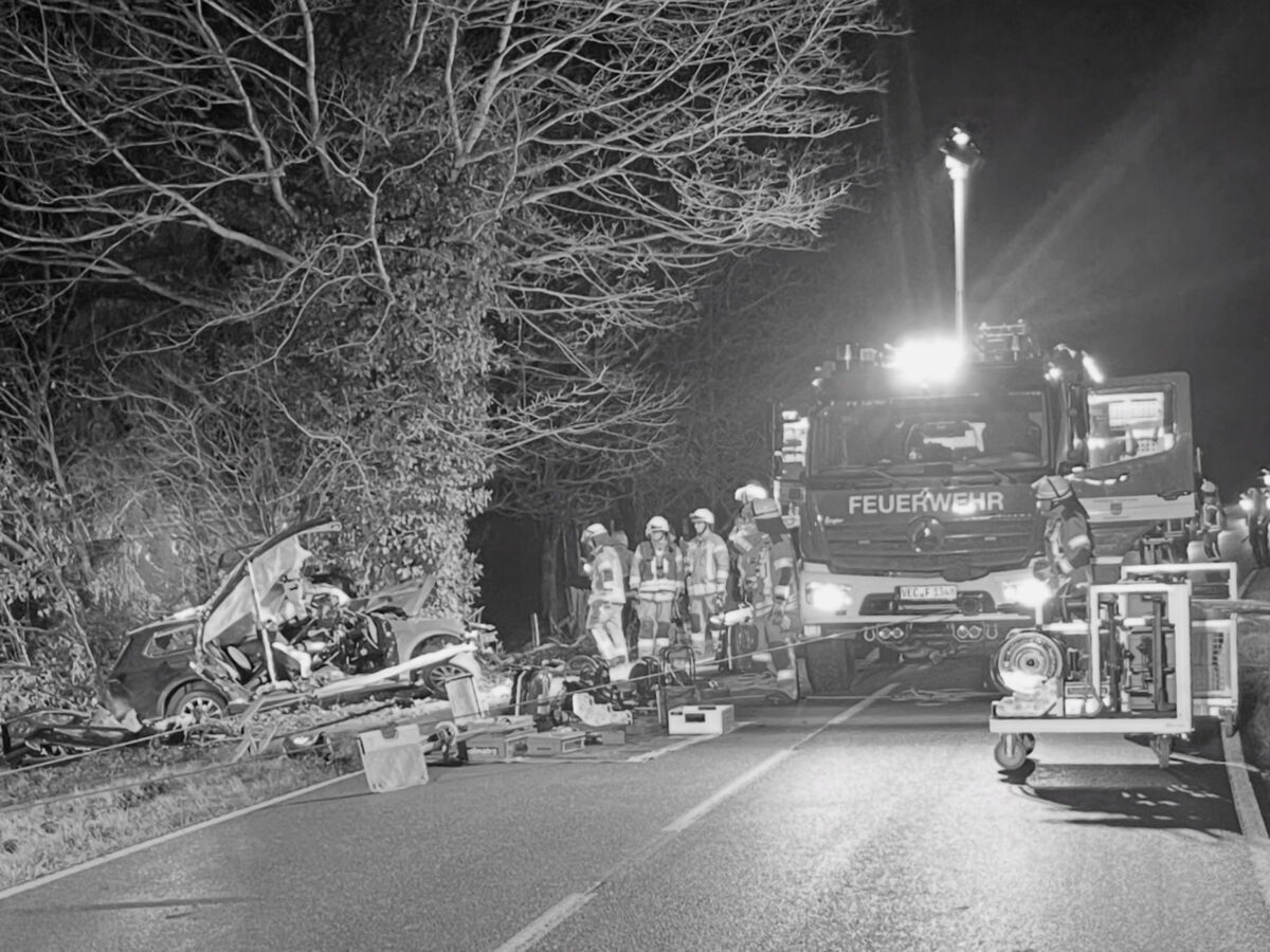 Ein PKW war mit einem Baum kollidiert, der Fahrer wurde dabei schwer verletzt.