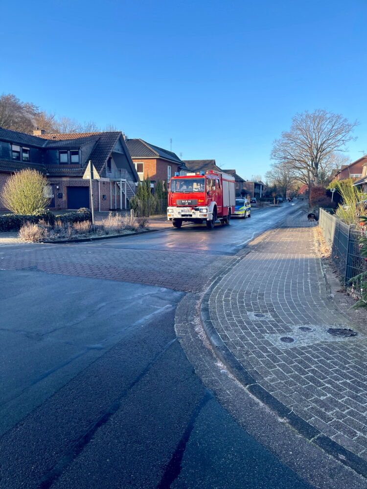 Vor Ort stellte sich heraus, dass ein Bewohner beim nach Hause kommen auf den Brand aufmerksam geworden war. Ein weiterer Anwohner benachrichtige die Feuerwehr, während im Haus bereits Löschversuche mit mehreren Feuerlöschern unternommen wurden.