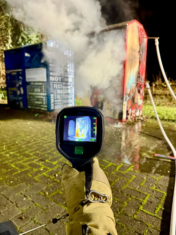 Wir haben das Fahrzeug per Wärmebildkamera überprüft und die betroffene Stelle mit Wasser heruntergekühlt.