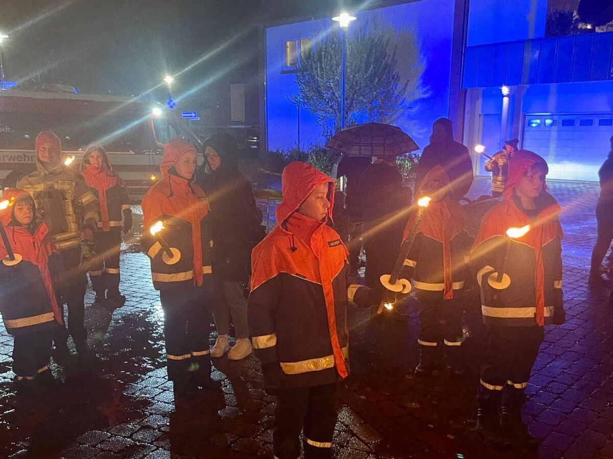 Trotz des schlechten Wetters kamen am Freitag wieder viele Familien sowie das Blasorchester Ellenstedt , St. Martin mit seinen Helfern und unsere Kameraden der Feuerwehr und Jugendfeuerwehr zum Laternenumzug zusammen.