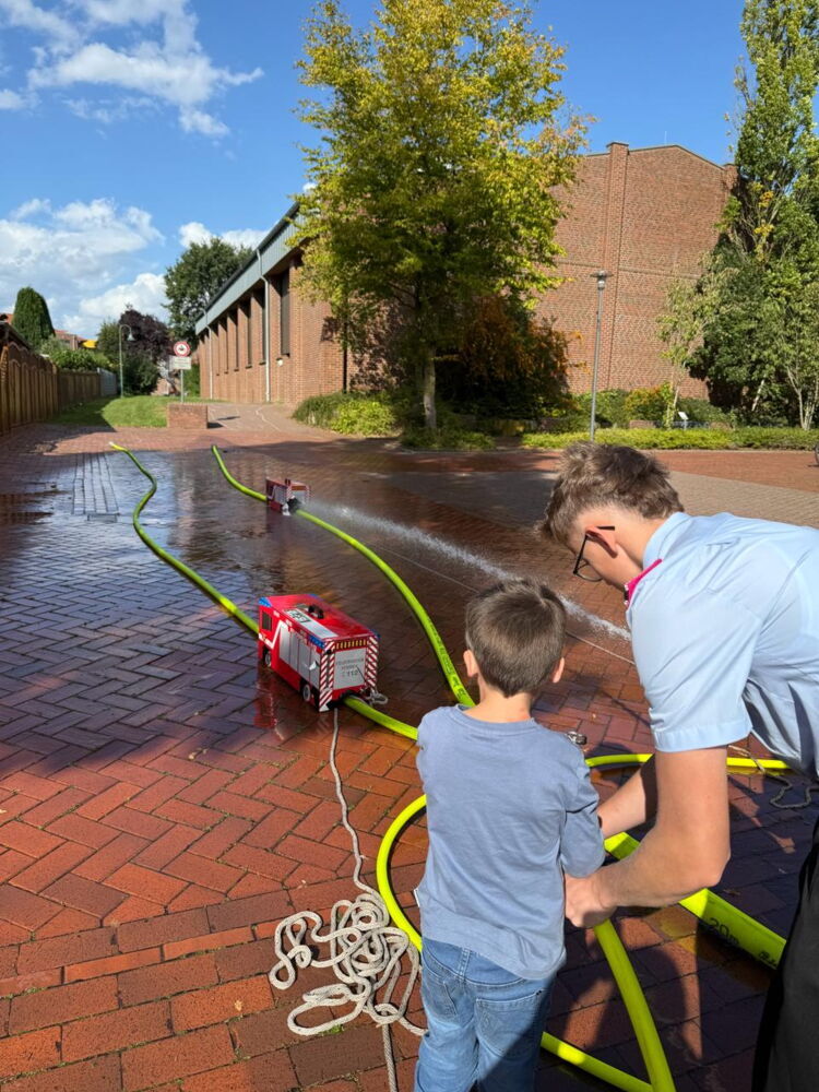 Bei bestem Wetter hatten die Kinder riesigen Spaß bei den Wasserspielen, konnten die Schutzausrüstung unserer Feuerwehrleute genau unter die Lupe nehmen und natürlich in den Fahrzeugen probesitzen.