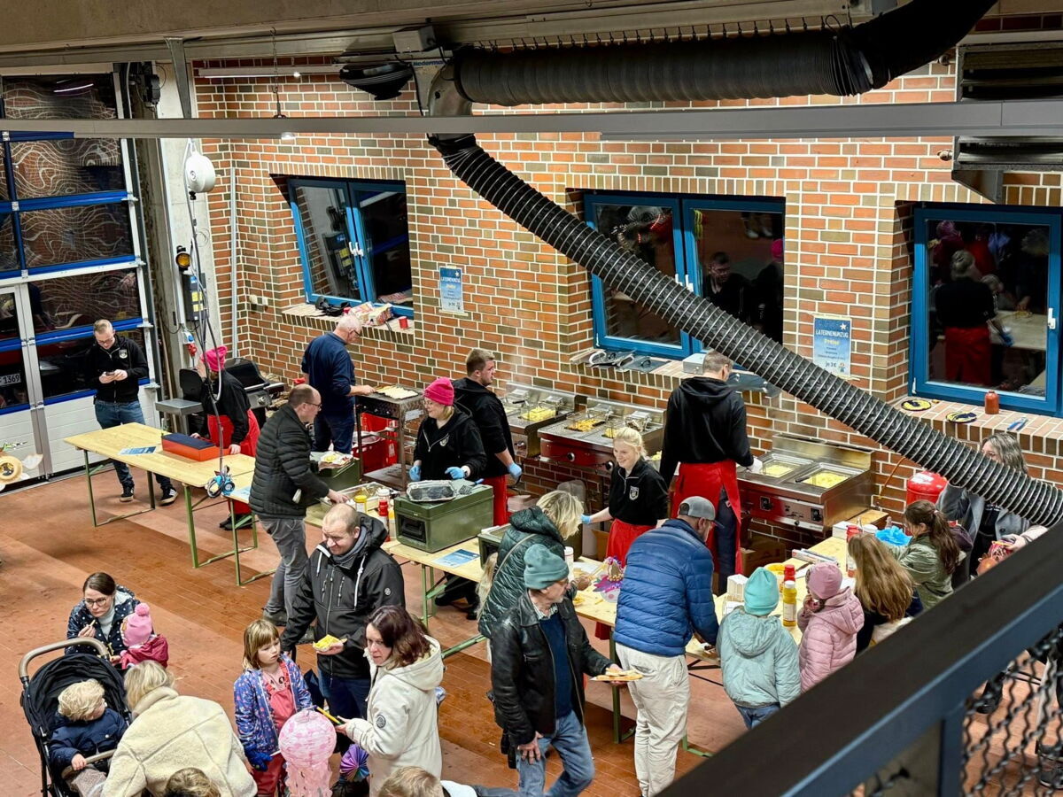 Vor und nach dem Umzug haben unsere Kameraden die Teilnehmenden im Feuerwehrhaus mit Pommes und Bratwurst/Nuggets versorgt, während das Team der Kita Martin Luther den Getränkestand übernommen hat.