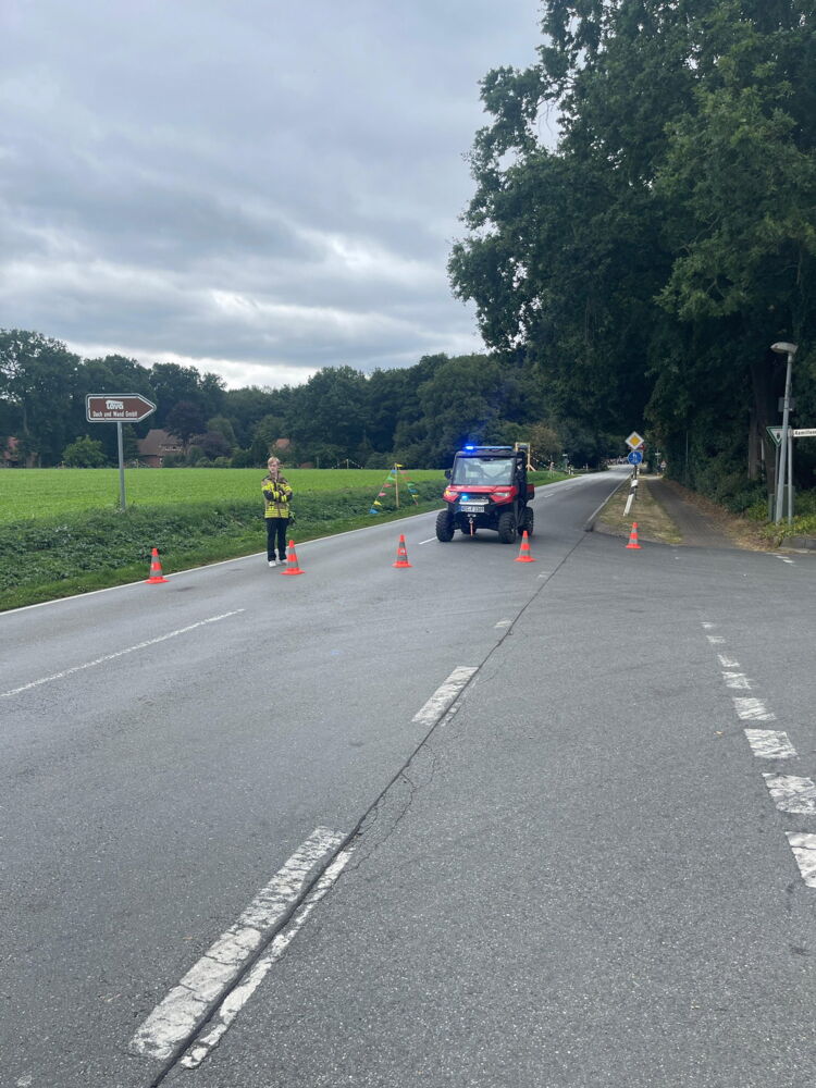 Der Polaris Ranger führte den Umzug an und das HLF bildete das Schlusslicht. Um die Absperrung bzw. Absicherung kümmerte sich die TLF-Besatzung und auch die Feuerwehr Lutten war mit ihrem LF vor Ort. Vom ELW aus wurde alles koordiniert.
